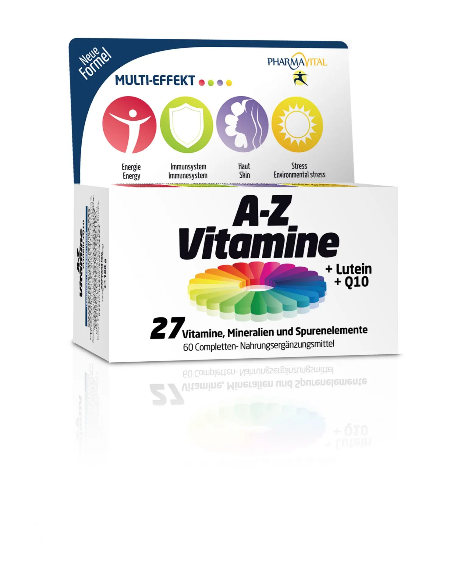 We are not always able to get enough vitamins and minerals from our daily diet. Pharmavital’s A-Z vitamin tablets are an ideal supplement, containing a balanced complex of vitamins and minerals, as well as lutein and Q10. So you can be sure that you are providing your body with an ideal supply every day.