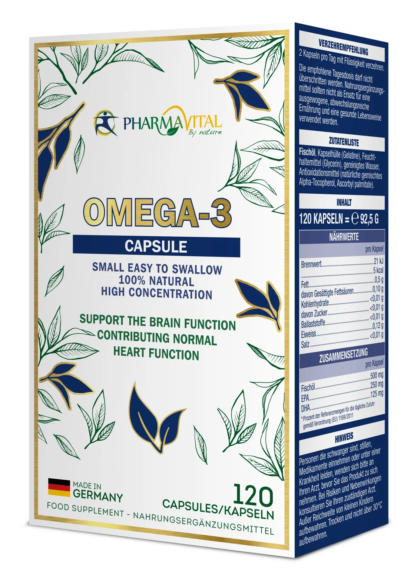 Die Pharmavital “By Nature” Omega Kapseln sind eine natürliche Quelle von Omega-3 Fettsäuren, diese können von unserem Körper nicht selbst gebildet werden. EPA und DHA tragen zu einer normalen Herzfunktion und dem Erhalt der natürlichen Gehirnfunktion bei.